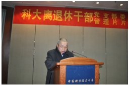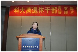 离退休干部党总支书记张利华作了题为《以科学发展观为指导,努力开创我校离退休干部工作新局面》的报告。报告中,张利华传达了中央领导有关离退休干部工作的重要讲话;对中央有关文件精神进行了解读,从离退休干部工作以落实“两个待遇”、实现’“六个老有”为指导思想,以围绕中心、服务大局,让党放心、让广大老同志满意为基本原则,离退休干部党支部的八项职责等方面谈了自己的理解和学习体会。同时,张利华还着重分析了我校离退休干部队伍、党员队伍现状以及离退休干部工作队伍的状况,指出我校离退休干部队伍具有整体素质高、充满活力等特点,也存在有空巢家庭老人生活不便等现实问题,离退办将积极创造条件,给老同志老有所为、老有所学搭建更多的平台,针对空巢家庭老人养老问题,将积极进行调研,探索出适合我校实际情况的方式和方法。