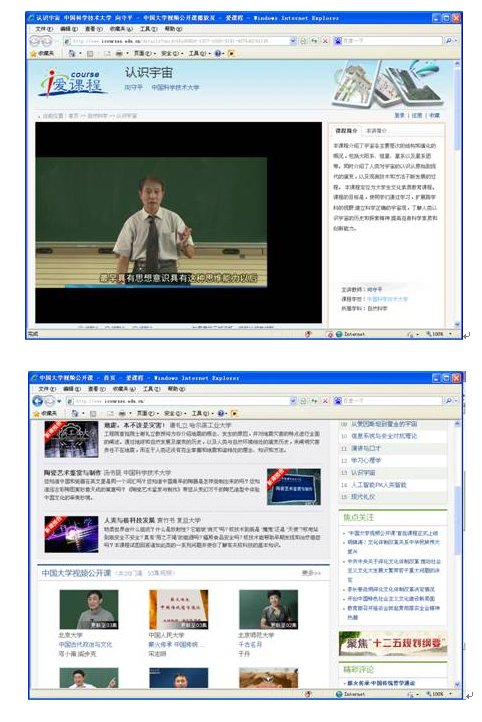11月8日上午,教育部召开新闻通气会,介绍“中国大学视频公开课”有关情况,由我国高水平大学建设的首批20门“中国大学视频公开课”于11月9日通过“爱课程”网(www.icourses.edu.cn)和其合作网站中国网络电视台、“网易”同步向社会公众免费开放。我校第六届教学名师奖获得者向守平教授讲授的《认识宇宙》课程进入首批上线课程,汤书昆教授主讲的《陶瓷艺术鉴赏与制作》已进入“新课预告”。另外,我校还有课程已通过教育部组织的专家初审,正在按照评审意见进行修改调整。
