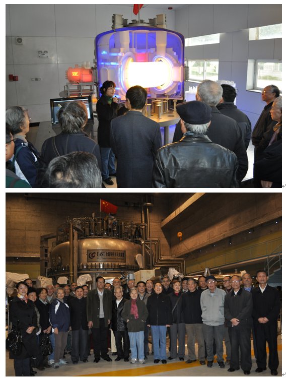 在中国科学院合肥物质科学研究院等离子体物理研究所,大家听取了等离子体所接待人员对核聚变能研究和国家大科学工程、世界上首个全超导托卡马克装置“小太阳”(EAST)的介绍,观看了EAST模型的工作演示和全超导托卡马克装置“小太阳”实体。大家对核聚变能研究内容和等离子体所的工作表现出浓厚的兴趣,对等离子体所不仅掌握了全超导托卡马克装置的完全自主知识产权,并在该装置上开展的物理实验中不断取得重要成果,有望大大提前实现核聚变能实际应用科学目标,对中国人在人类聚变工程发展中在起着重要的前驱作用表示欣慰和赞赏。