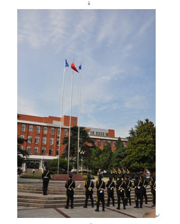鲜艳的五星红旗伴着激昂有力的《义勇军进行曲》,潇洒大方地飘扬在郭沫若广场上空。院旗和校旗也伴随着校歌冉冉升起。