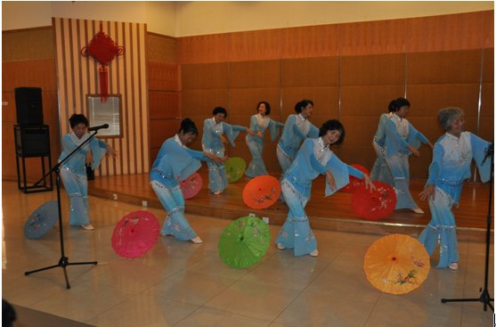 张绪珍、苟荣珍等9位老师给大家带来舞姿表演《烟花三月下扬州》,她们在悠扬动听的歌声中,演绎着轻盈曼妙。