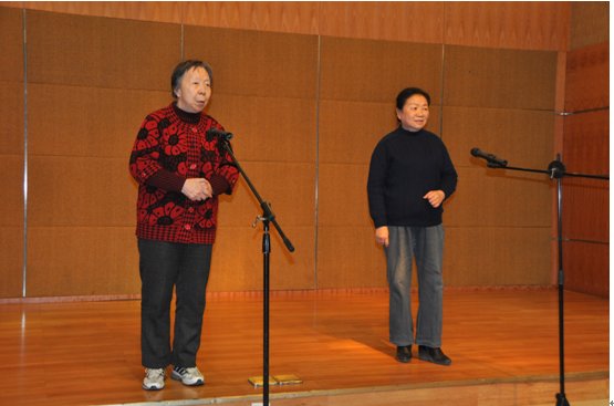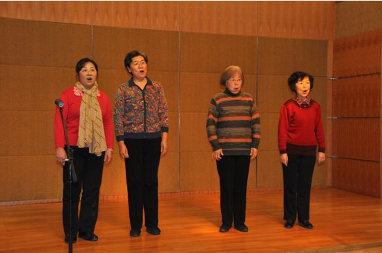 任苏菲、曹蓓等四位老师为大家表演了女生二重唱《清晨我们踏上小道》、《红梅花儿开》,歌儿虽然古老,却是承载了离退休老同志们曾经的青葱岁月,看!她们唱得多么专注!