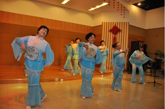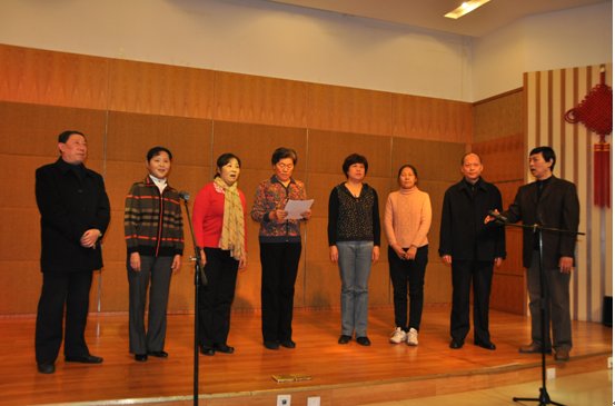 迎新年联欢会在离退办6位工作人员的小合唱《共和国之恋》中拉开序幕,真挚的演唱赢得了大家的喝彩。