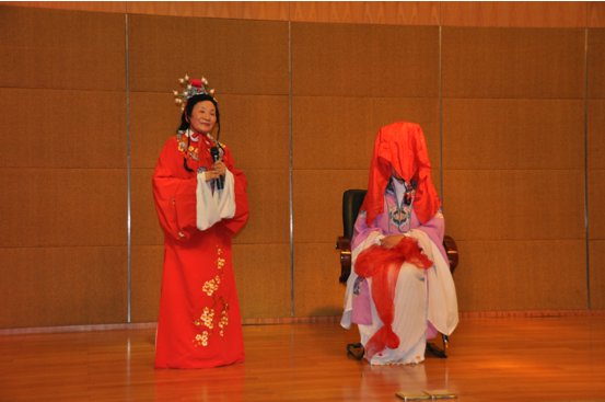 一个是女扮男装,一个是老有少心。宋振玉、曹水清表演了越剧红楼梦选段《金玉良缘》,越剧唱腔婉转优美,引人入胜。