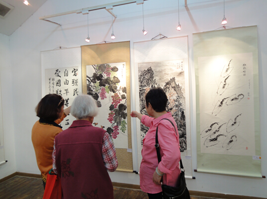 10月9日上午9点,由中国科技大学离退休干部工作办公室和中国科大老年大学书法绘画班联合举办的书法绘画展在学校现代艺术中心开展,本次展出以纪念建国65周年和建校56周年为主题,共展出书法作品26幅,绘画作品32幅。参展人员共35人,其中年龄最长的申维明老师已经90高寿,他们都是科大老年大学书法、绘画班学员。