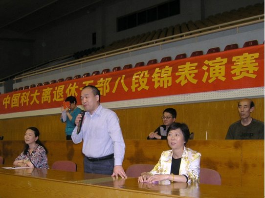 5月13日下午3点,中国科大离退休干部健身气功八段锦表演赛在南区体育馆隆重开幕。来自离退休干部党总支的校机关退休支部、化学与材料科学学院退休支部、工程科学学院退休支部、人文与社会科学学院退休支部、附属中学退休支部、后勤服务退休支部、直属单位退休支部以及数学科学学院支部与物理、核科学技术学院退休支部联队等八支代表队近200位老同志参加表演赛。校党委常委、副校长窦贤康出席赛场并讲话。本次表演赛由离退办老师张静主持。