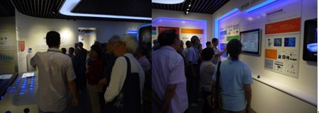 在先研院陆守香院长的陪同下,老同志们观看了先研院形象宣传片,参观了科技展厅、未来网展示中心和先进技术成果转化展示厅。陆院长热情细致地向大家介绍了中科大先研院的规划建设情况和转化引进创新机制等运营情况,从未来网络实验设施,到3D打印、离子膜材料、智能电致变玻璃、阻燃新材料、公共交通危险品监测模块等科研成果。老同志们认真观摩了各项产品及技术演示,并对行业领域前沿技术和众多相关研发创新成果表示出浓厚的兴趣和关注。在感慨科技进步时不我待的同时,大家也深刻体验了先研院对科教结合、优势转化、创新发展战略的诠释与注解。
