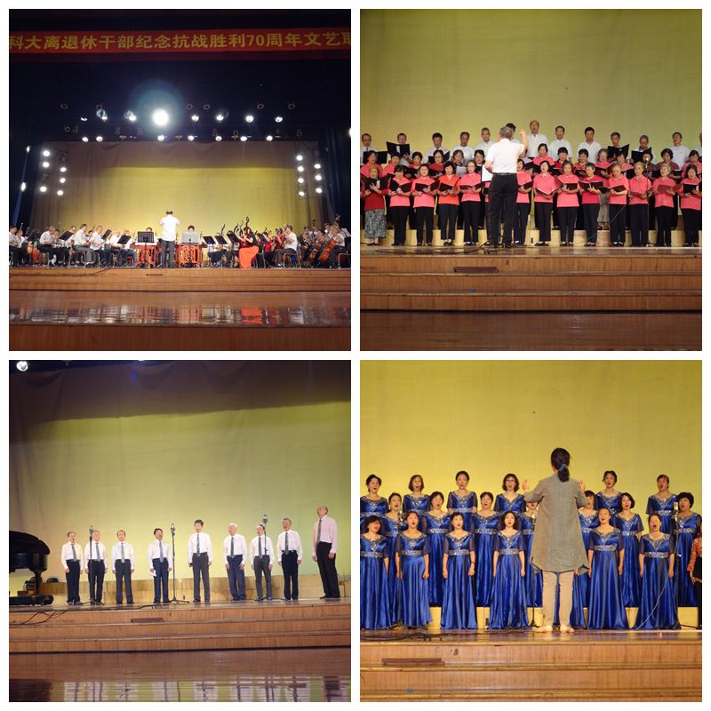 九月十二日下午,科大离退休干部在校礼堂举行联欢,隆重纪念中国人民抗日战争暨世界反法西斯战争胜利七十周年,以多种形式纪念中华民族反抗外来侵略的伟大胜利。广大离退休干部怀着热爱祖国、热爱和平的高昂热情,积极参加演出和观摩。参加演出者近四百人次,很多人暑假期间也坚持排练。