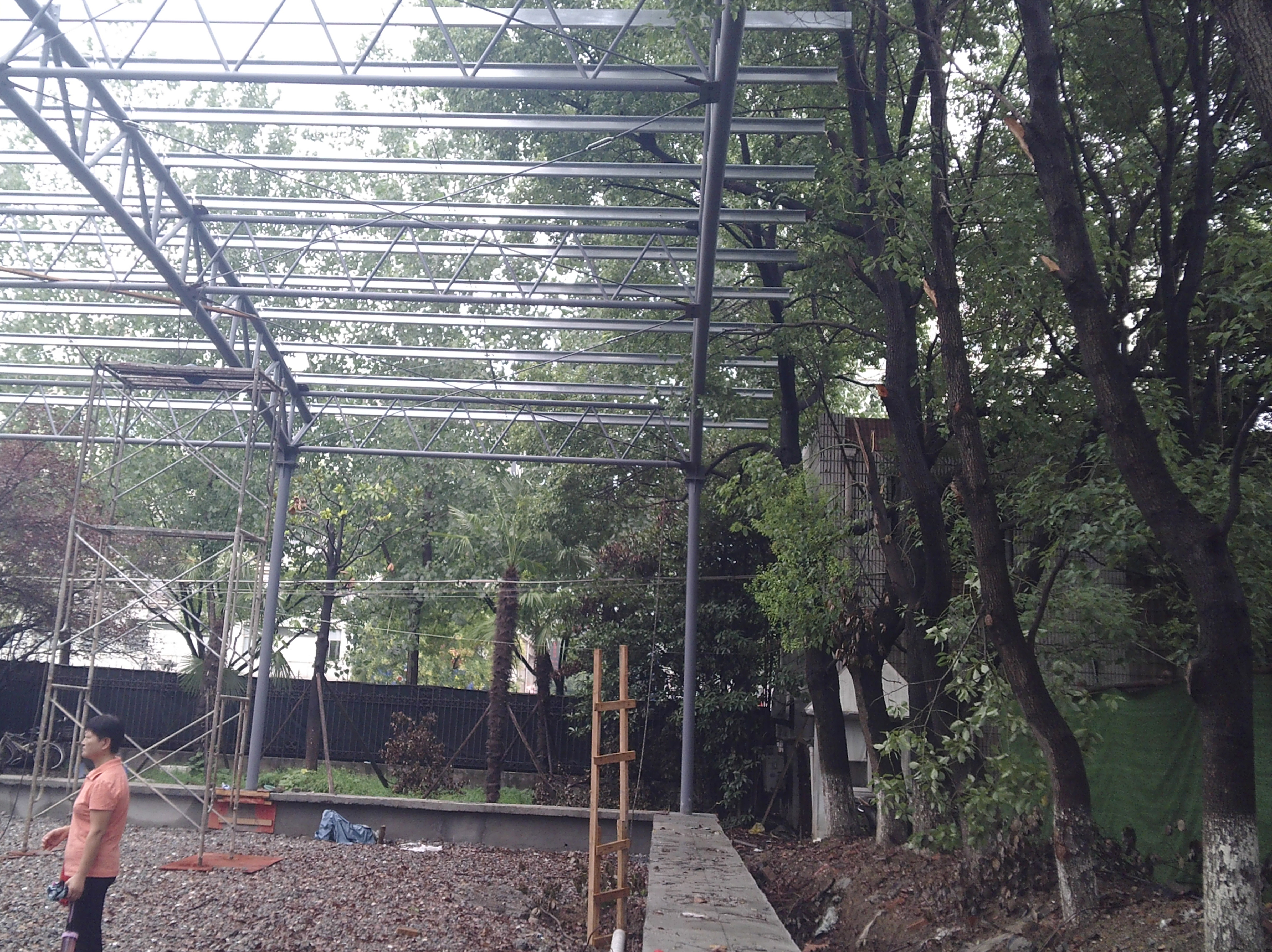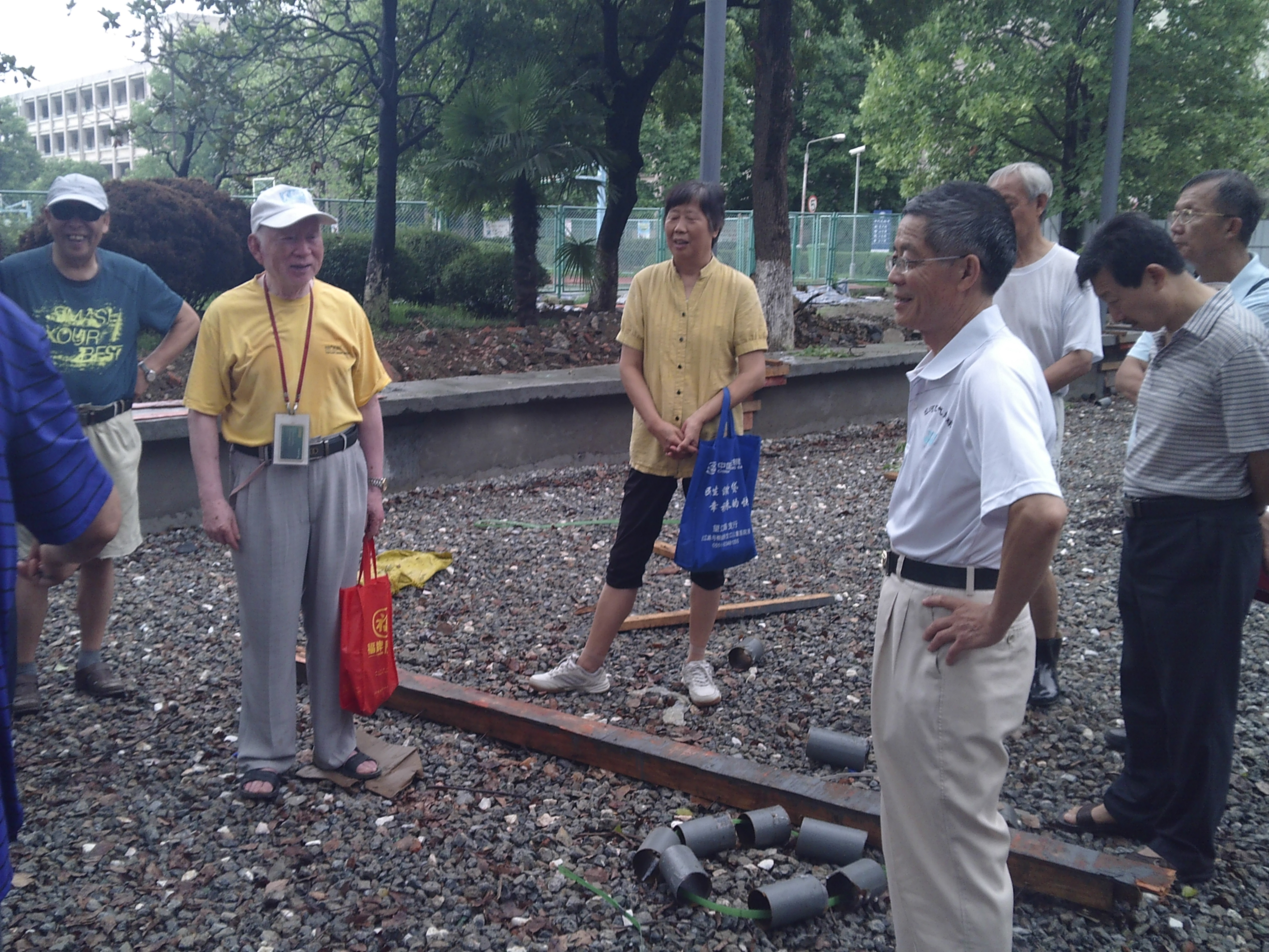 8月13日上午,为了更好地完成南区门球场建设,老年体协门球分会特地在南区施工现场召集门球队员会议,听取大家意见,集思广益。会上老年体协副会长兼秘书长王景玉通报了南区门球场建设进度。目前我校南区门球场正在有序建设中,顶棚金属框架已建好,地面碎石基础已铺好,基础矮墙已砌好,电路、水路基础管线已布好,见照片。剩下的工作主要包括顶棚的铺盖、人造草坪的铺设、工作用房的搭建、配套设施建设等,大约尚需一个月的时间。到会人员就门球场建设进行了热烈讨论,大家踊跃发言,各抒己见。譬如有的老师提出门球场周围的树木与门球场之间应保持安全距离,不拟挨得太近。有的老师提出对于金属构件但凡有生锈的地方拟再涂防锈漆,以确保金属构件的使用寿命。有的老师提出场内的排水管拟移至场外,以防时间长了管子漏水或渗水而殃及场地。有的老师认为门球场一定要设置喷淋装置,象东区门球场一样,这样可以方便洒水,且洒水均匀,以确保人造草坪的使用寿命,并保护场地。……这些看法和建议,准备会后及时反馈给基建部门,供下一步施工参考。我们相信在我校离退办、基建处、老年体协的领导下,我校南区门球场一定能够建设好,一定能在我校未来的体育活动中发挥积极作用。