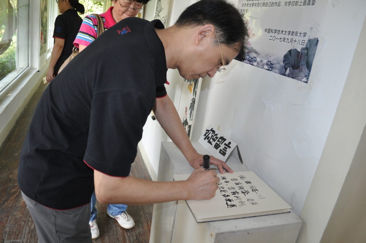 9月18日上午9点,我校离退办、老年大学联合举办的“我爱中科大”老年大学学员书法绘画摄影手工作品展在东区现代艺术中心准时开幕,老年大学书法班、绘画班、摄影班、数码相片后期处理班等班级的老师和学员约50人参加开幕式,王晓平副校长出席开幕式并参观了展览。