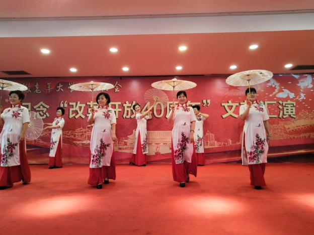 参加演出的单位用腰鼓、秧歌舞、独唱、合唱、时装表演等不同的艺术表演形式,表达了老同志们对改革开放取得的各项成就的讴歌,对美好生活的赞美。