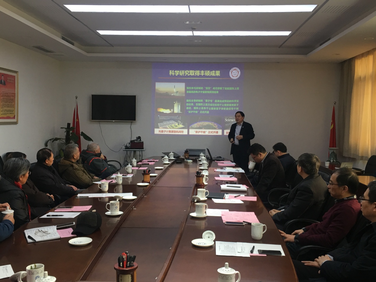 1月20日上午,学校在东区218楼二楼会议室召开了离退休同志新春座谈会暨校情通报会,退休的校领导代表、离退休干部党支部书记、片长代表参会。校党委书记舒歌群,校长包信和,校党委副书记蒋一,校党委常委、副校长王晓平,及机关相关部门负责人出席了会议。会议由王晓平副校长主持。