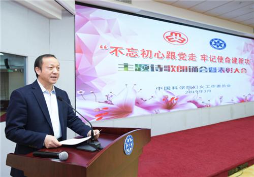 3月6日,在第109个“三八”国际劳动妇女节来临之际,中科院妇工委在京举办“不忘初心跟党走 牢记使命建新功”主题诗歌朗诵会暨表彰大会,中科院副秘书长、直属机关党委常务副书记李和风出席并讲话。我校工会常务副主席史明瑛代表学校参加了本次会议。