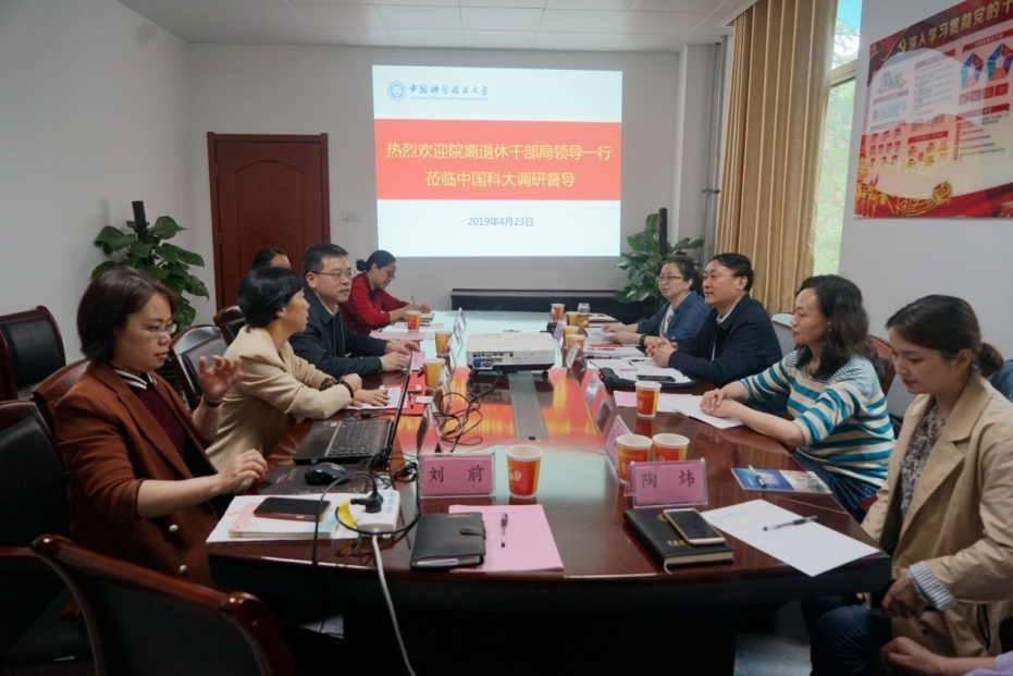 4月23日下午,中科院离退休干部工作局副局长曹以玉一行到我校督导调研离退休干部工作。校党委副书记何淳宽主持会议,离退办全体工作人员参加会议。