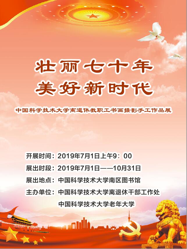 为了庆祝建国、建院七十周年,中国科大离退休教职工以书画献礼,用笔墨抒情,采光影变幻,抒发了老一辈科大人爱国、爱院的赤子情怀。回望历史,见证波澜壮阔的奇迹;放眼未来,期待祖国更辉煌的明天!