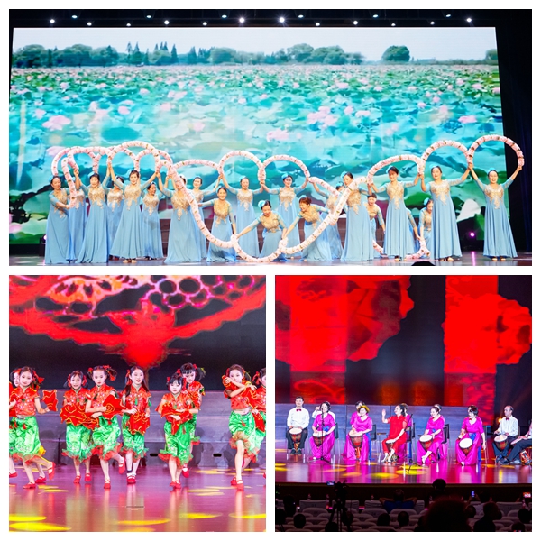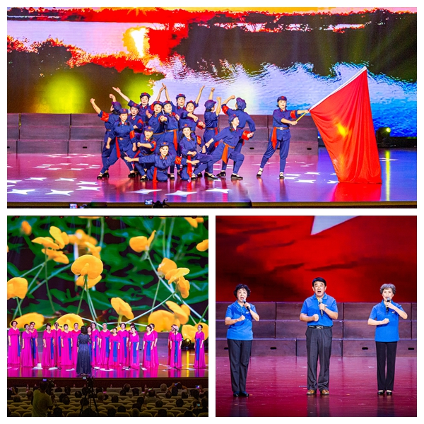 用花环编织美好祝愿,打起手鼓唱起歌。金秋艺术团为大家带来了开场舞表演《幸福中国一起走》和非洲鼓表演唱《打起手鼓唱起歌》;科大附中的孩子们活泼灵动,为爷爷奶奶带来了舞蹈表演《爷爷奶奶和我们》,为联欢会增添了几分可爱的童趣。