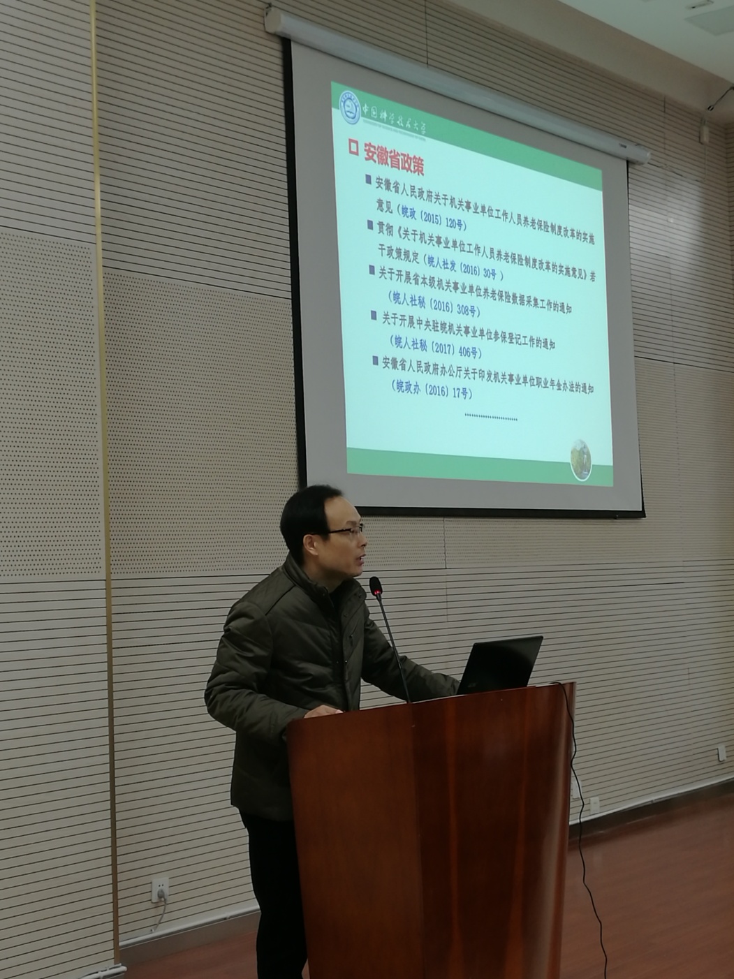 会上,人力资源部李方元副部长向大家汇报了学校养老保险制度改革的相关情况,他从改革背景、改革内容和退休待遇发放方式变化三个方面做了详细的介绍,并发放了相关宣传手册,进行了现场答疑。