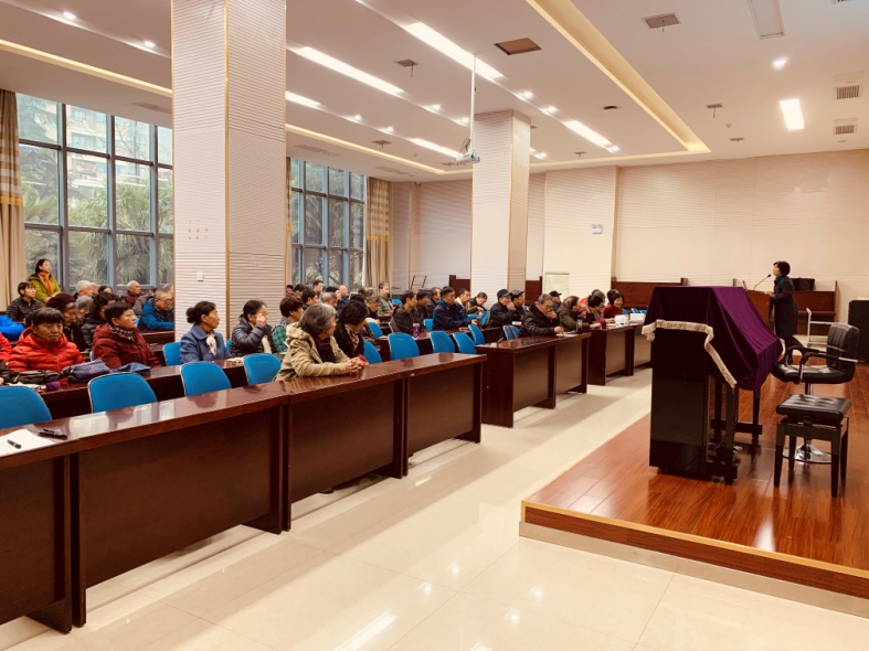 接着,刘艳结合离退休党委下半年开展的“不忘初心 牢记使命”主题教育活动,从主题教育学习,利用艺术团、老年体协、老年大学、关工委和老科协五大平台开展的各项主题活动,以及“以问题为导向”开展调研整改落实情况三个方面向在座老同志们通报了2019年下半年离退休工作的总体情况,表示我们将继续坚持“深入基层、精准服务、认真务实”的工作作风,用心用情做好老同志的服务管理。刘艳着重介绍了在元旦春节即将来临之际,学校通过离退休困难帮扶基金、学校党委党费、离退休党委返还党费、工会及人力资源部五个渠道共同开展的慰问帮扶困难离退休教职工总体情况,送温暖办实事,表达了学校对大家的关爱和慰问。