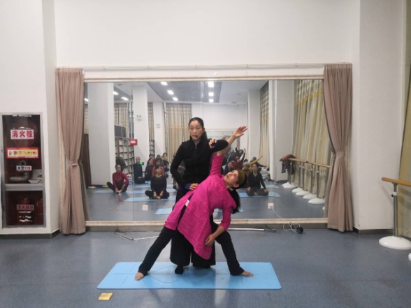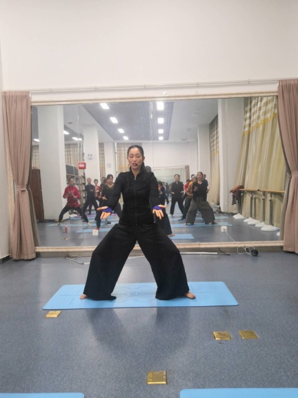 郝红梅老师和大家分享了太极瑜伽散中求聚,积点成圆,万物归点,万物趋圆,意在进退,探索无限的理念。并和学员们进行了站桩功、坐桩功和基础太极瑜伽的展示、练习与互动。