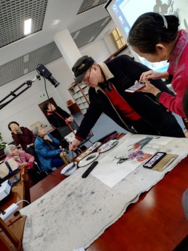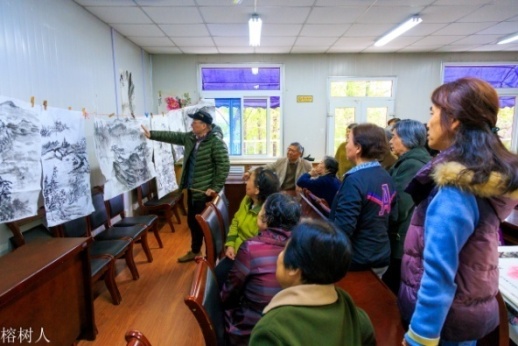 绘画班教师点评学员作品 书法班教师与学员交流