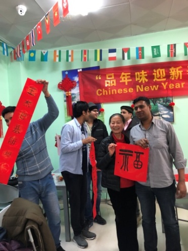 学员教留学生书写春联