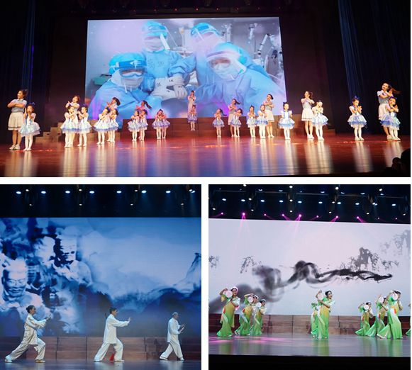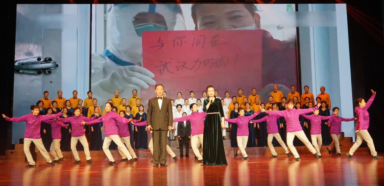 “性命相托,我是你的依靠。”联欢会以混声合唱《白衣长城》开幕,歌曲由我校金秋合唱团和附一院共同演绎,MV中集合了众多抗疫的真实感人画面,带给现场观众极强的触动,让我们一起向抗疫天使们致敬!