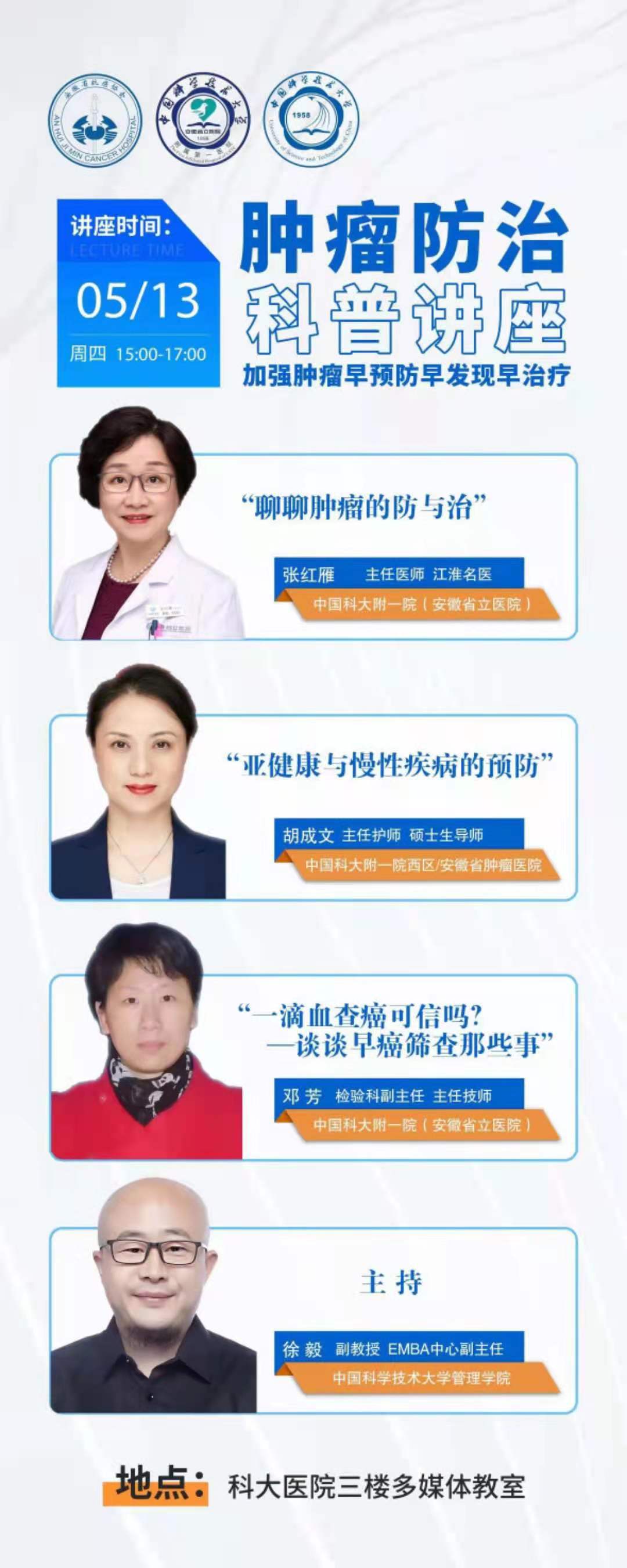 为加强肿瘤的早预防早发现早治疗,守护生命健康,附属第一院和校医院共同举办肿瘤防治科普讲座,欢迎感兴趣师生参加。
