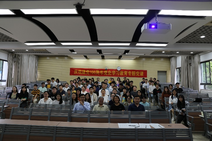 报告会最后,系研究生第二党支部书记吕振婷同志代表全体师生向韩荣典教授赠送了建党100周年笔记本套装,所有参会师生一起合影留念。