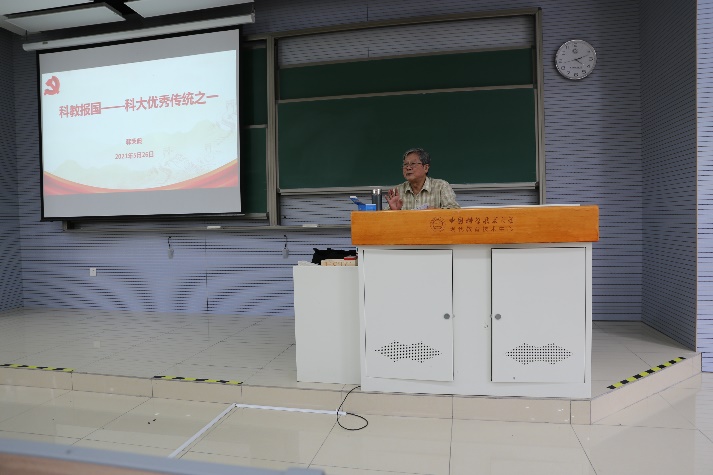 5月26日下午,应环境科学与工程系党总支邀请,我校关工委委员韩荣典教授在2105教室作“科教报国——科大优秀传统之一”专题党课辅导报告。环境科学与工程系全体师生参加了此次报告会,报告会由系党总支书记张文真主持。