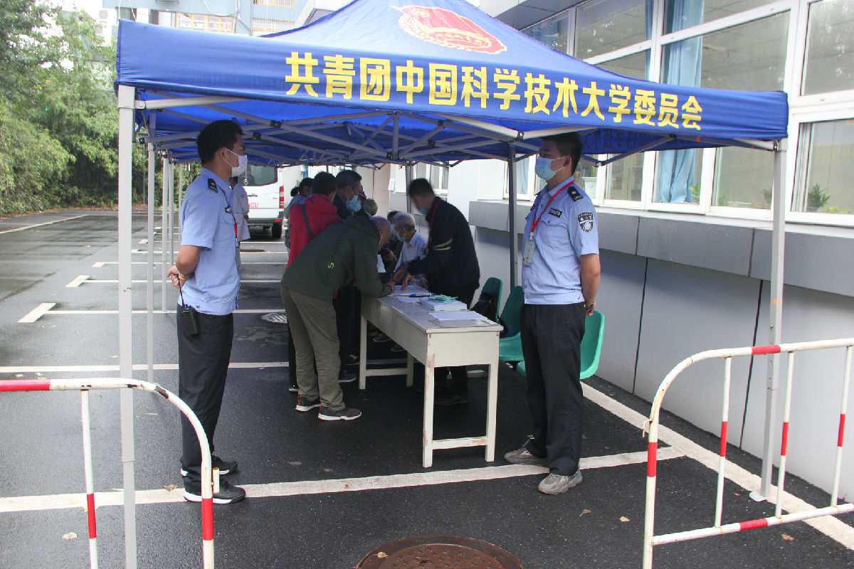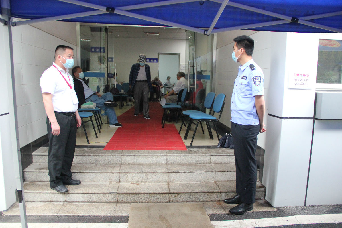 保卫与校园管理处工作人员现场维持秩序,保障疫苗接种工作安全、有序