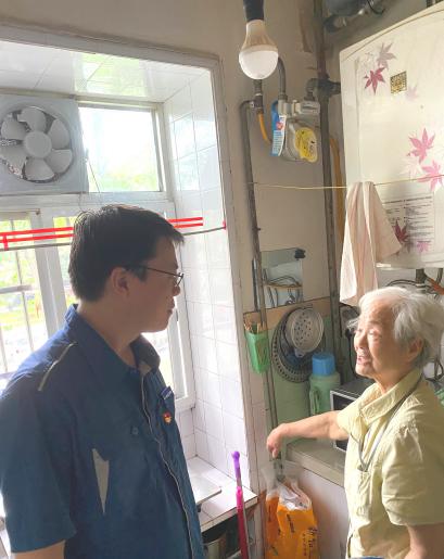 6月10日,党员一行上门走访北区的李老师家中,党支部成员们耐心聆听李老师夫人提出的维修诉求。