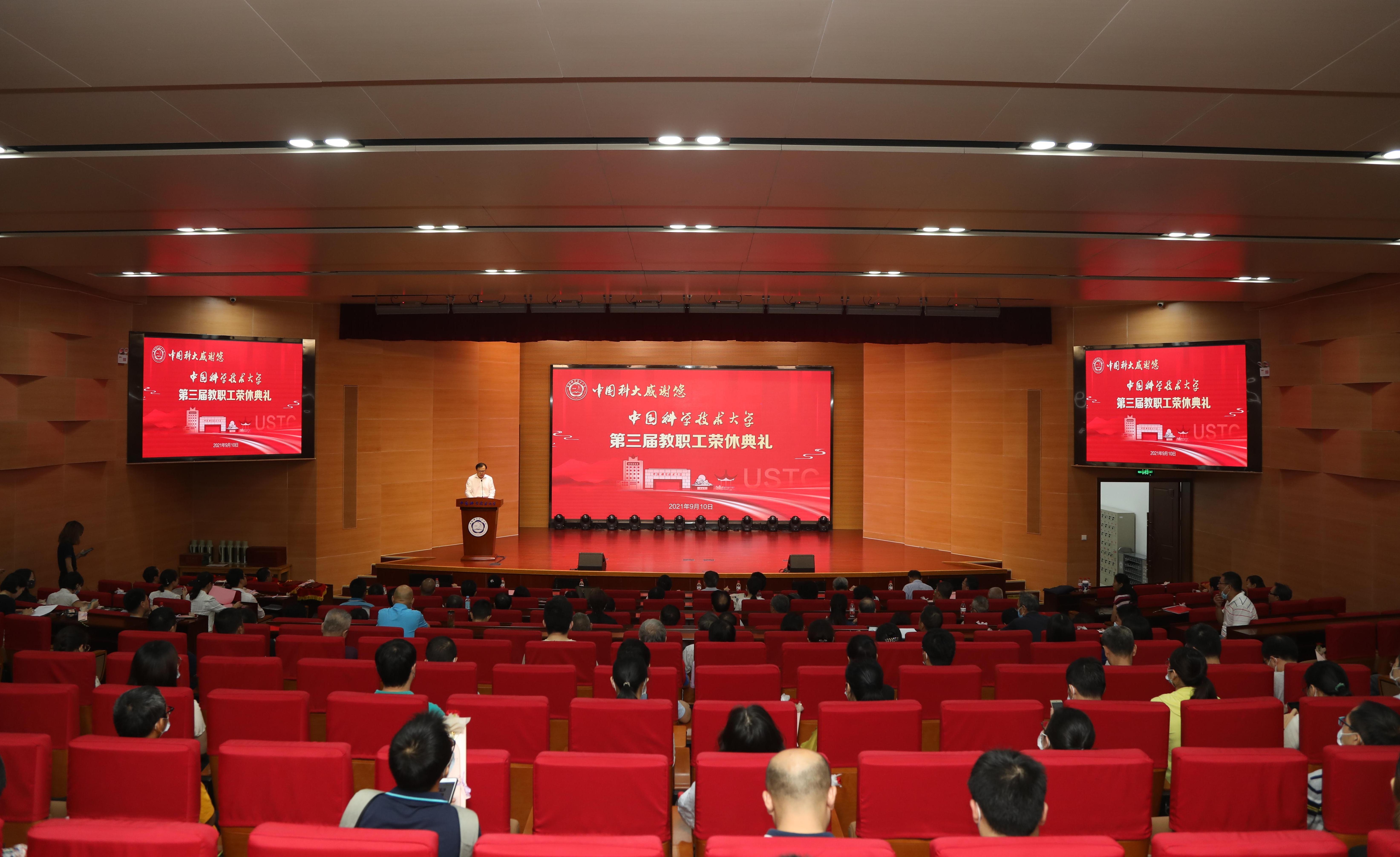 师风化雨,桃李芬芳。今年9月10日,是全国第37个教师节。为传承科大精神,发扬优良传统,当天上午,中国科大第三届教职工荣休典礼在水上报告厅隆重举行。校领导舒歌群、包信和、蒋一、朱长飞、王晓平、黄素芳、周丛照出席典礼,近期荣休的教职工和新入职教职工代表、各院级党组织书记、相关职能部门负责人、各分工会负责人参加了典礼。荣休典礼由校党委副书记傅尧主持。