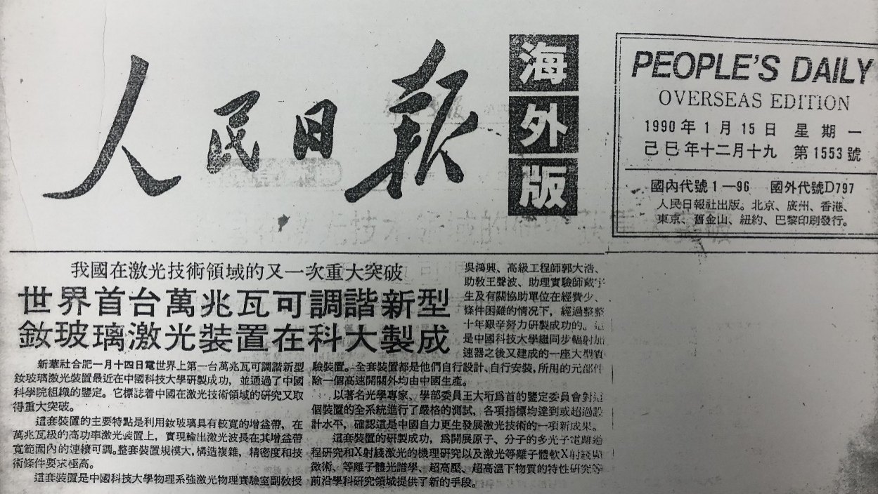 吴鸿兴教授介绍,1960年,世界上第一台激光器诞生。1961年,中国科学院长春光学精密机械研究所成功研制出中国第一台激光器。同年,刚从西安交通大学物理系毕业的吴鸿兴,来到中国科大技术物理系进修并留校任教。