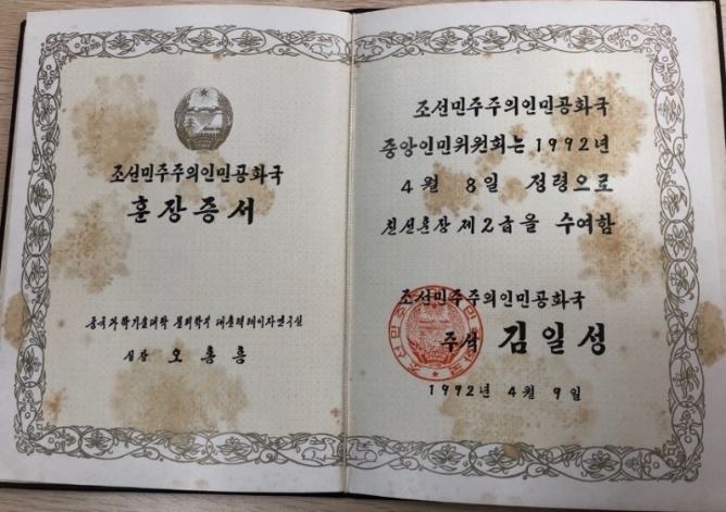 吴鸿兴教授捐赠朝鲜民主主义人民共和国友谊勋章
