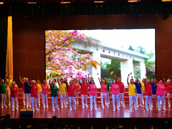 2021年12月19日,中国科学技术大学“百载辉光昭日月,寰宇聚梦谱华章”新年联欢晚会在东区大礼堂录制,金秋艺术团带来歌舞表演《送你一朵小红花》。老同志们以欢快的歌曲,活泼可爱的舞蹈,充分展现了他们热爱生活、活力四射的精神面貌。
