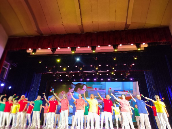 2021年12月15日,由中央广播电视总台与全国老龄办、中国老龄协会主办的“忆峥嵘岁月 唱响时代歌声”——CCTV《乐龄唱响》全国海选合肥赛区选拔赛在新华公学圆满举行,我校金秋艺术团受邀参与演出,表演歌曲《送你一朵小红花》。舞台上老同志们精神抖擞、妆容整齐、歌声嘹亮、节奏准确、饱含激情,充分展现出良好的精神面貌,老教师们一双双热情洋溢的笑眼,让在场的所有观众深深动容。