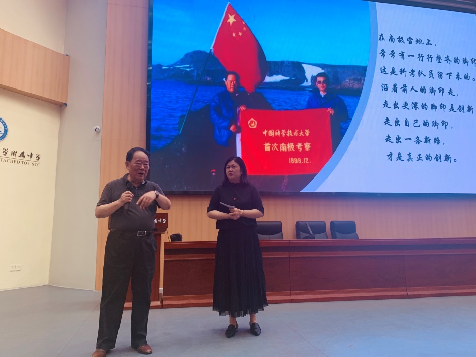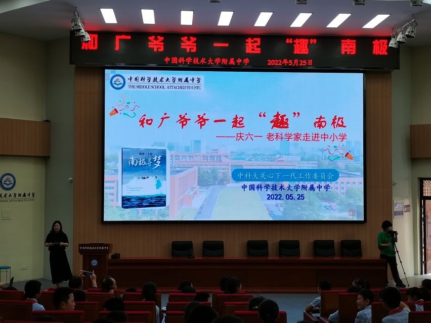 5月25日下午,由学校关心下一代工作委员会和学校附属中学联合主办的“庆六一 老科学家走进中小学”专题报告会在附中报告厅顺利举行。学校关工委委员孙立广教授受邀作《和广爷爷一起“趣”南极》专题报告,附中五年级师生250余人在现场聆听。报告会由五年级年级组长葛莉主持。