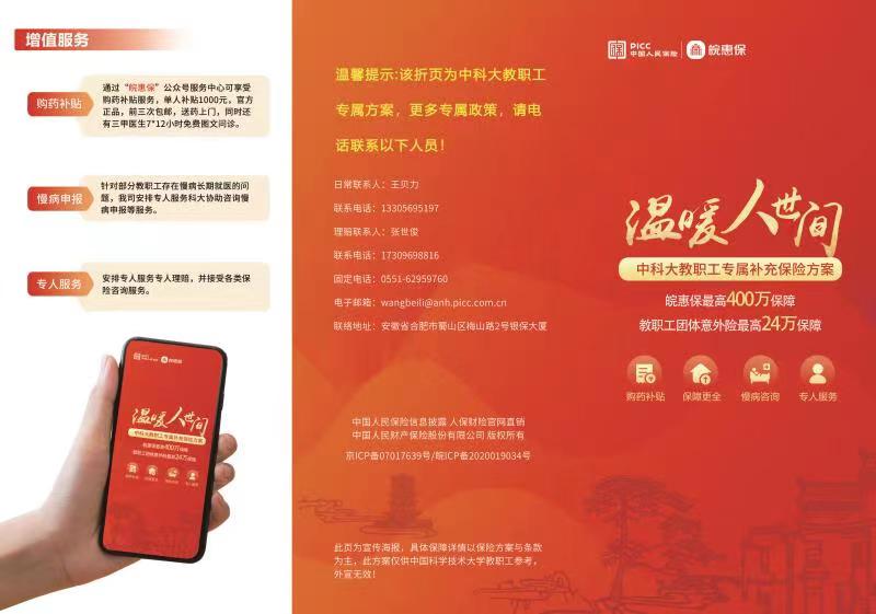 为建立多层次医疗保障体系,学校已连续两年为全校教职工(含离退休人员)统一购买了商业补充医疗保险“皖惠保”和高额意外险。为便于广大教职工了解“皖惠保”和意外险有关政策,中国人保财险公司业务经理余梦云就“皖惠保”产品和意外险的具体内容、理赔办法等做了宣讲。
