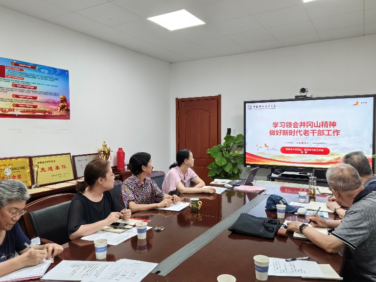 离退休干部党委副书记张静讲述党课《学习领会井冈山精神 做好新时代老干部工作》。张静围绕井冈山学习、井冈山精神及联系实际谈感悟三方面作党课报告。张静介绍了中国科学技术大学2023年井冈山优秀人才培训班的主要内容,重点介绍了“井冈山精神”的主要内涵,她指出,要坚定执着追理想、独立自主谋发展、实事求是闯新路、依靠群众求胜利、艰苦奋斗攻难关、凝心聚力共向前,弘扬新时代井冈山精神。张静表示,今后工作要以“井冈山精神”为指导,保持“平常之心”,牢记“责任之心”,常怀“敬老之心”,努力做好新时代老干部工作。