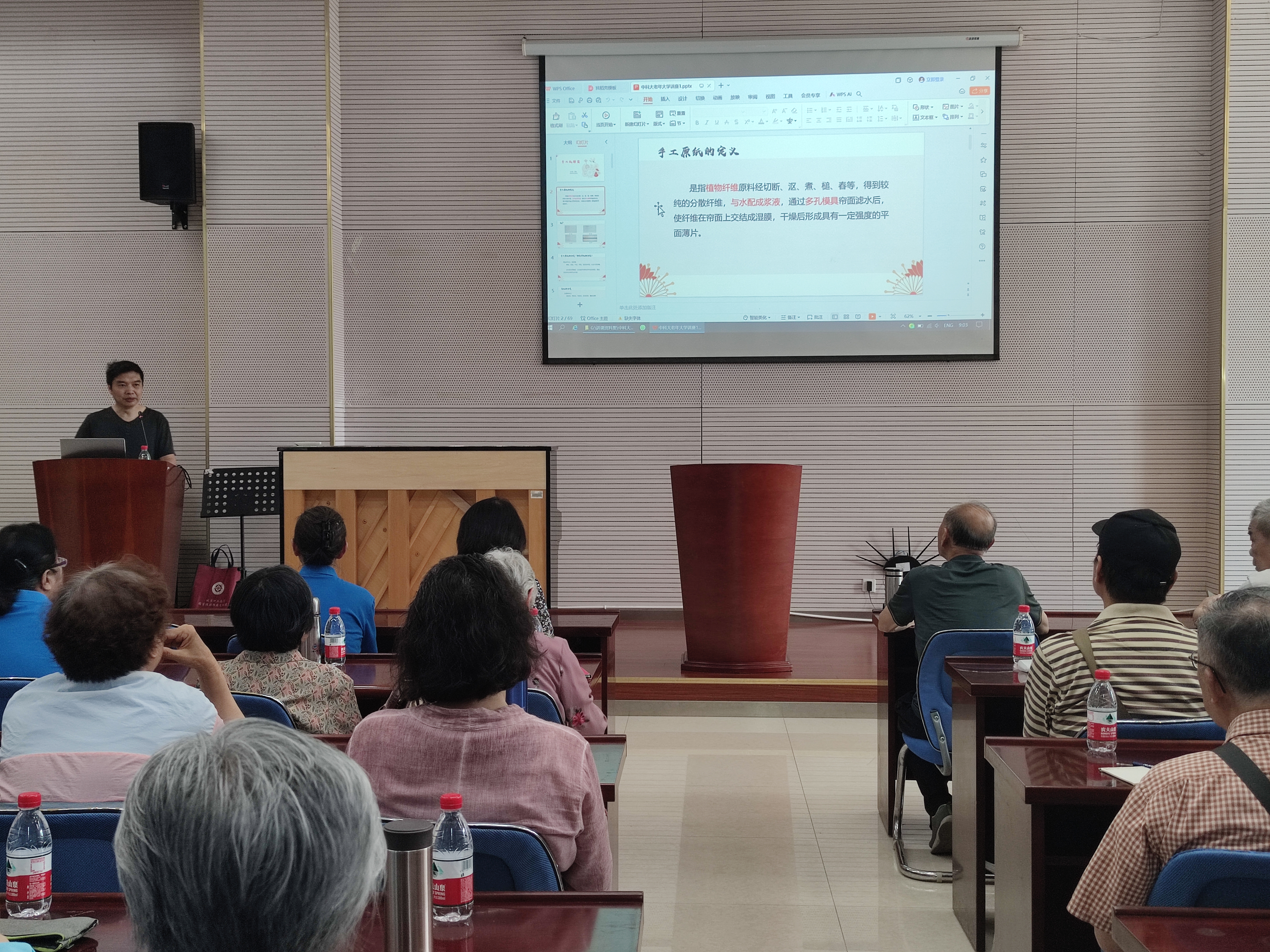 为进一步丰富离退休老同志的精神文化生活,深入了解和传承传统手工造纸与纸笺加工艺术,5月24日上午,由离退休干部工作处主办的第五期“瀚海银龄大讲堂”之说不尽纸笺美讲座在南区老年大学教室如期举行。本次活动由离退休干部工作处处长万洪英主持,近40位老同志参加活动。活动特邀安徽省当代文房四宝研究所所长、国家级非物质文化遗产代表性传承人、中国艺术研究院民间艺术创作研究员、高级工艺美术师刘靖担任主讲嘉宾。