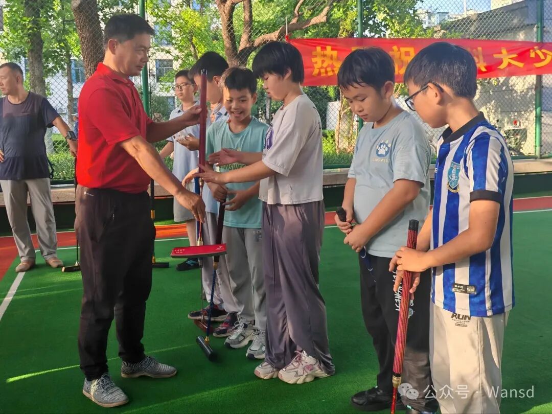 暖心筹备:多方接力,聚力成行。少年门球班的落地,离不开一场跨单位、跨群体的温情接力。第15届全运会门球比赛中,安徽少年门球队夺冠的喜讯带来了灵感与动力,科大门球协会会长罗有泉随即向科大附中教育集团董事长提出开设门球第二课堂的设想,迅速获得全力支持。此后,科大门球协会与科大附中教务处、第二课堂负责人就办班细节、招生规模等问题反复沟通、达成共识;在校关工委的支持下购置了15根儿童门球杆,彻底免除学生家庭的经济负担;拥有15年球龄、兼具丰富教学经验与专业战绩的鲍桂君老师更是欣然受邀担任教练——这位曾斩获全国女子门球比赛团体冠军、美丽中国全国门球大赛团体冠军,且现任安徽省老年大学与合肥市军休老年大学门球教练的专家,为课程质量提供了坚实保障。