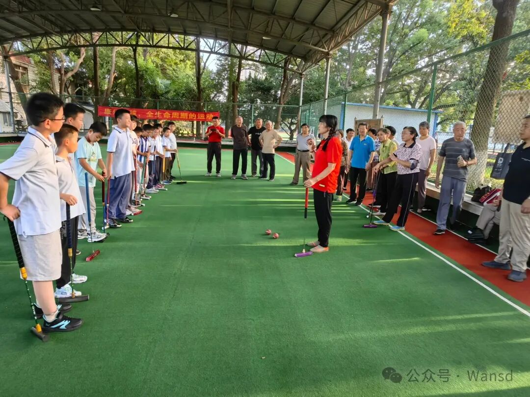 理念创新:打破界限,共育成长。门球运动素来以节奏舒缓、策略性强的特点,成为许多老年人休闲社交的重要选择,却也因此被贴上“银发专属”的标签。而我校门球协会以独特视角发掘其深层价值——门球运动对专注力的锤炼、团队协作的培养以及战略思维的塑造,与少年成长的核心需求高度契合。“运动本无年龄界限,我们只是种下一颗种子,让青涩少年与白发老翁在同一个赛场上对话。”门协委员万教授的话语道出了项目创办的初心,更诠释了打破代际壁垒、以运动联结成长的创新理念。