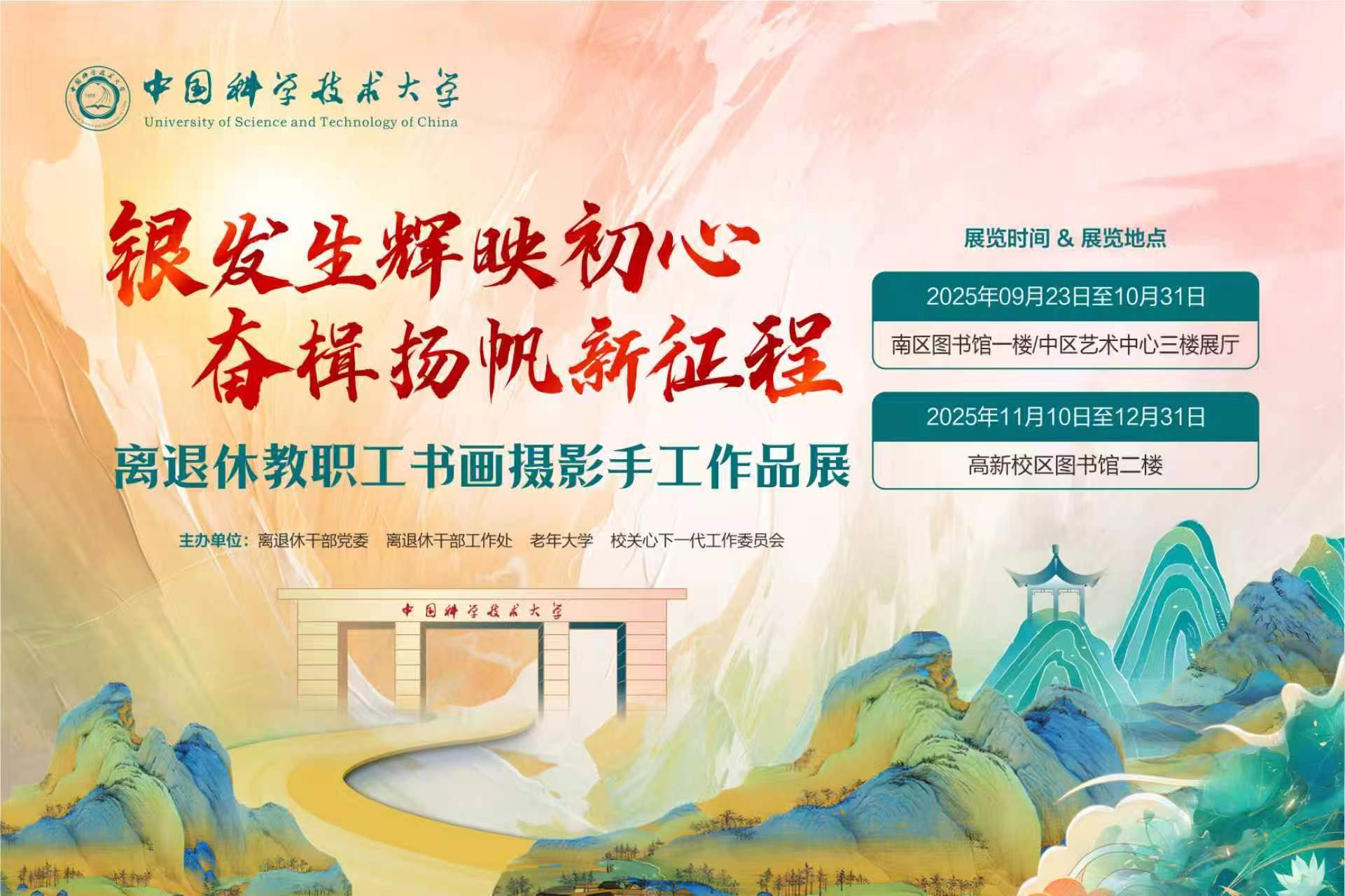 为庆祝中华人民共和国成立76周年、中国科学院建院76周年及中国科学技术大学建校67周年,离退休干部党委、离退休干部工作处联合老年大学、校关心下一代工作委员会举办“银发生辉映初心奋楫扬帆新征程”离退休教职工书画摄影手工作品展。广大离退休教职工挥毫颂华、调彩绘章,裁光赋影、巧手筑梦,以佳作浓缩万象之美,以匠心定格时代之韵,让平凡绽放出非凡的光彩,展现了新时代离退休同志老有所为、老有所乐的昂扬风貌。