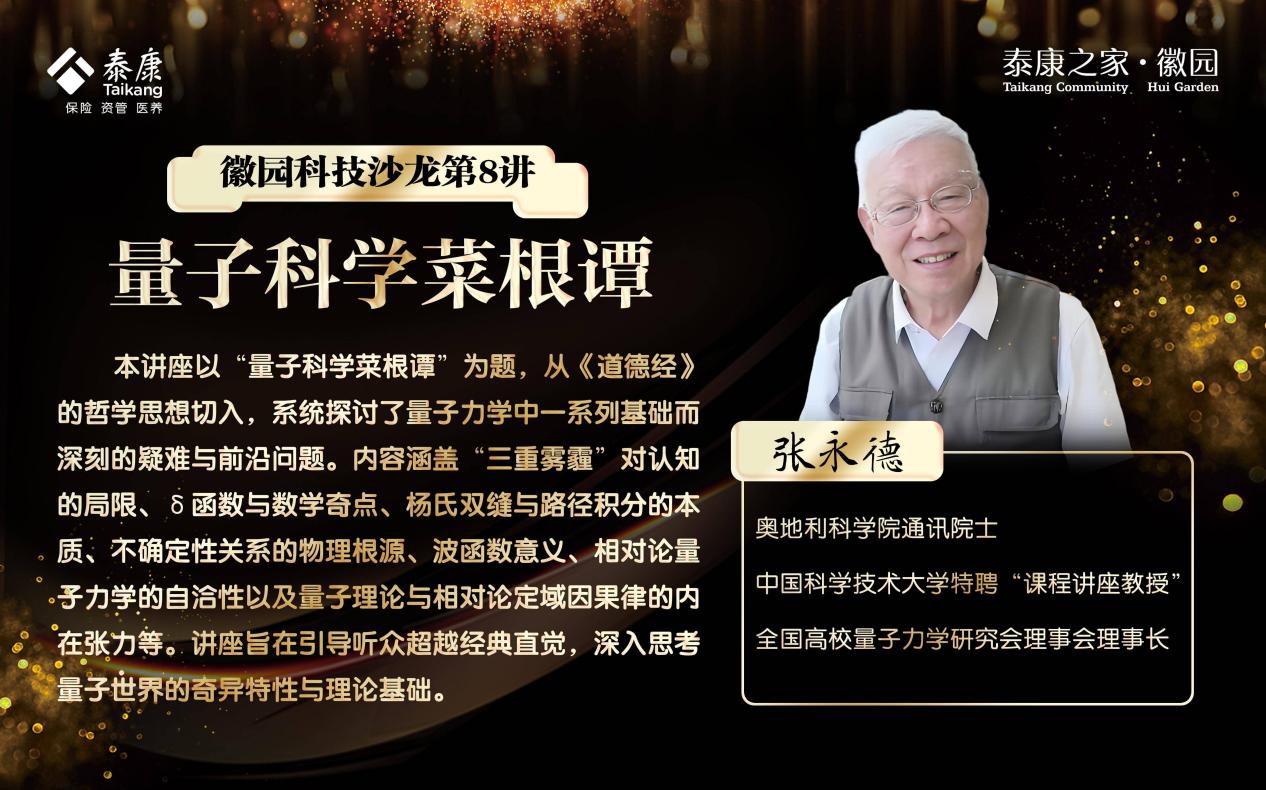 为充分发挥高校资深专家的智力资源优势,推动科学知识普及与社会共享, 9月30日下午,我校近代物理系退休教授张永德,受邀前往泰康之家徽园,开展科技沙龙第八讲《量子科学菜根谭》专题报告,为社区内的科技爱好者与居民呈现了一场融合尖端量子知识与人文思考的精彩分享。