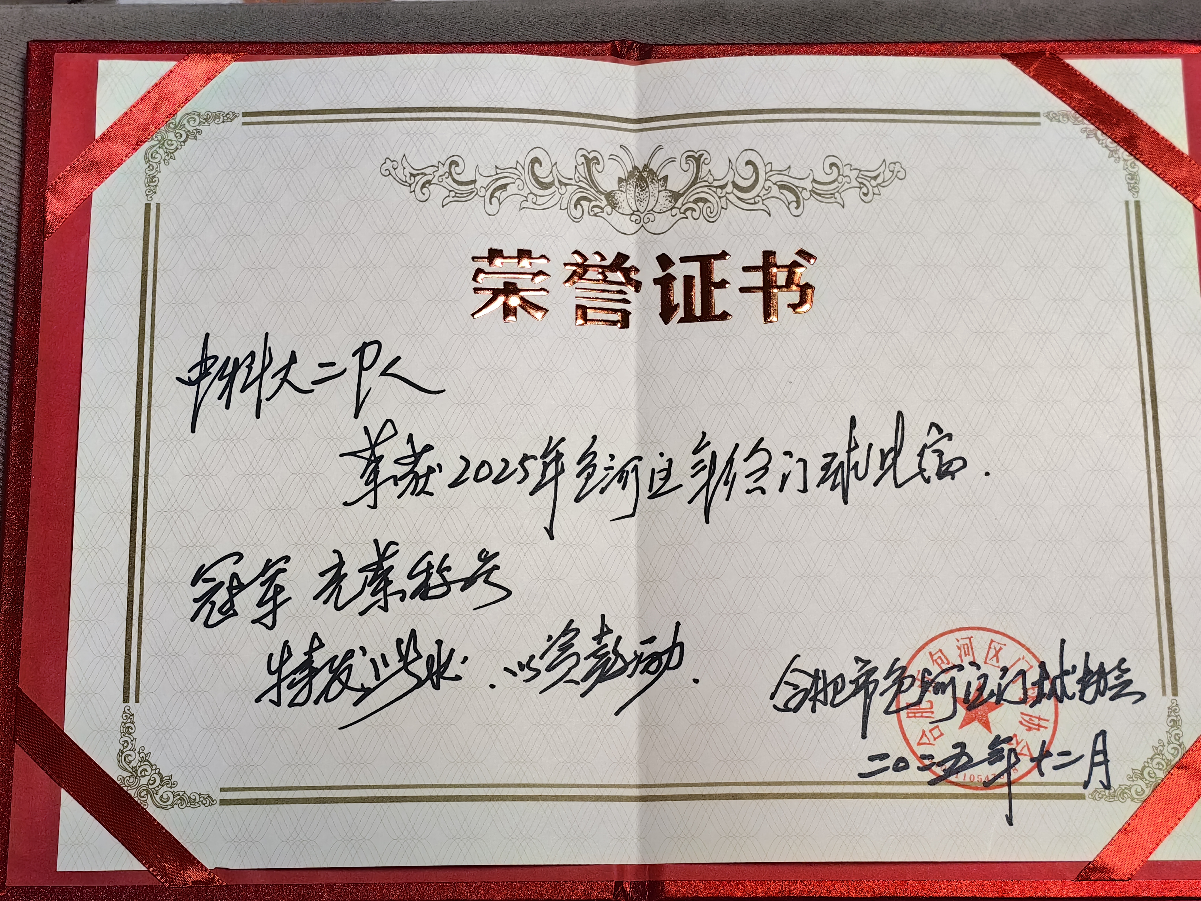 颁奖仪式上,合肥市门球运动协会王同成会长、包河区门球协会林应华会长、蜀山区门球协会佘德如会长、中国科大老年门球协会罗有泉会长共同为获得前三名的代表队颁发奖杯和证书。罗有泉会长为中国科大二队颁奖时,勉励队员们珍惜荣誉、再接再厉,持续传承门球运动精神,展现中国科大离退休干部的良好风貌。最后,包河区门球协会林应华会长致闭幕辞,总结赛事成果,向所有获奖队伍及全体参与人员表示祝贺与感谢。