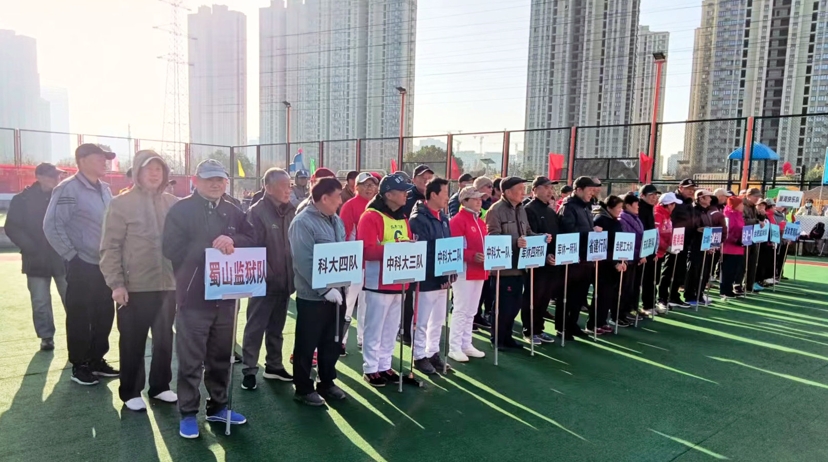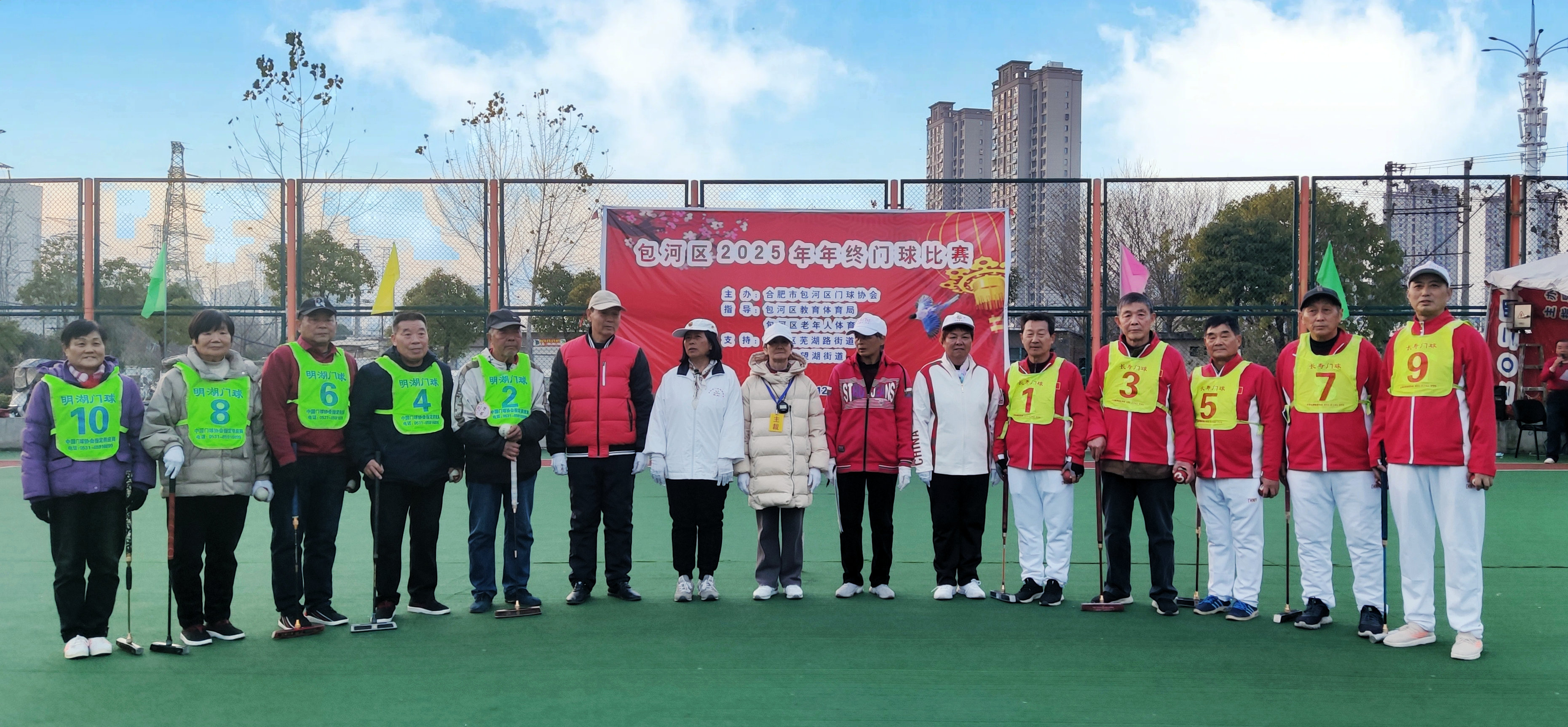 晴空万里心欢畅,阳光灿烂笑容扬。12月的包河区常青体育公园门球场,迎来了包河区2025年年终门球赛的如期举行。作为本次赛事的重要参与方,中国科学技术大学老年体协门球协会积极组织队伍参赛,与各方门球爱好者共赴盛会、同场竞技。本次赛事在包河区教育体育局、包河区老年人体育协会的指导下,由包河区门球协会主办,并得到包河区芜湖路街道、包河区望湖街道的大力支持,于12月15日正式拉开赛幕。开幕式现场嘉宾云集,来自包河辖区及周边地区的门球代表队运动员、教练员、裁判员,以及辛勤付出的工作人员约170余人齐聚现场,共同见证赛事开启。