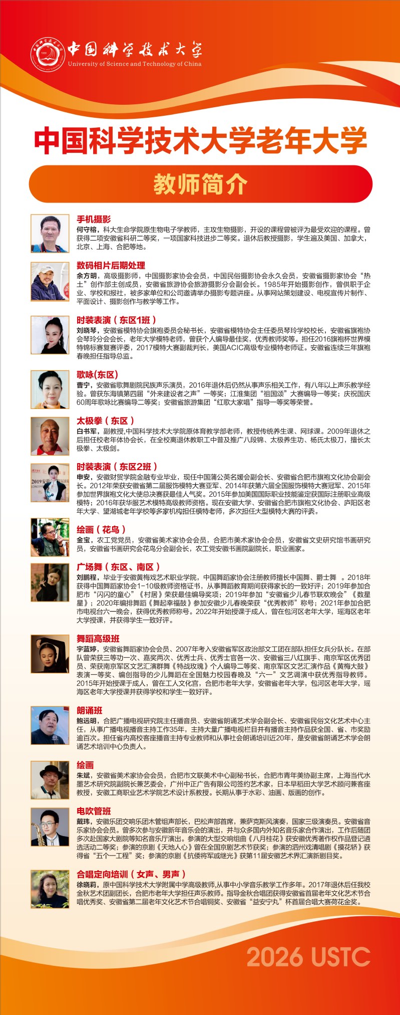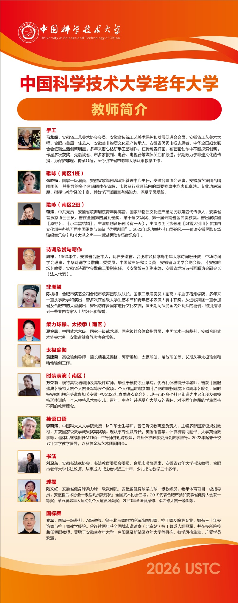 中国科大老年大学2026年春季学期任课教师简介