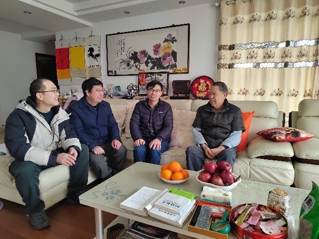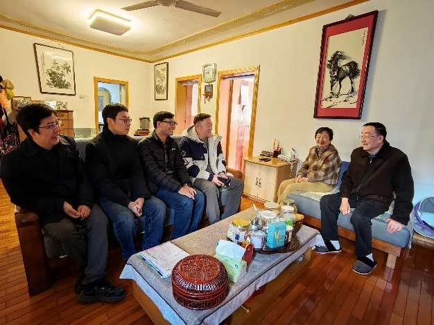 1月22日上午,农历马年新春佳节来临之际,物理学院党委副书记张一飞、近代物理系党总支书记唐泽波一行深入离退休教职工家中,开展春节走访慰问活动。慰问组先后前往东区及科大花园东、西苑,登门看望了朱栋培、范扬眉、马文淦、赵淑君、赵智宏、胡伯铨、杜淮江等七位老同志。每到一处,院系领导都与老同志促膝交谈,关切询问他们的身体状况和生活起居,并送上节日的问候与祝福。老同志们对组织的关怀表示由衷感谢,现场欢声笑语,暖意融融,大家在温馨的氛围中合影留念。