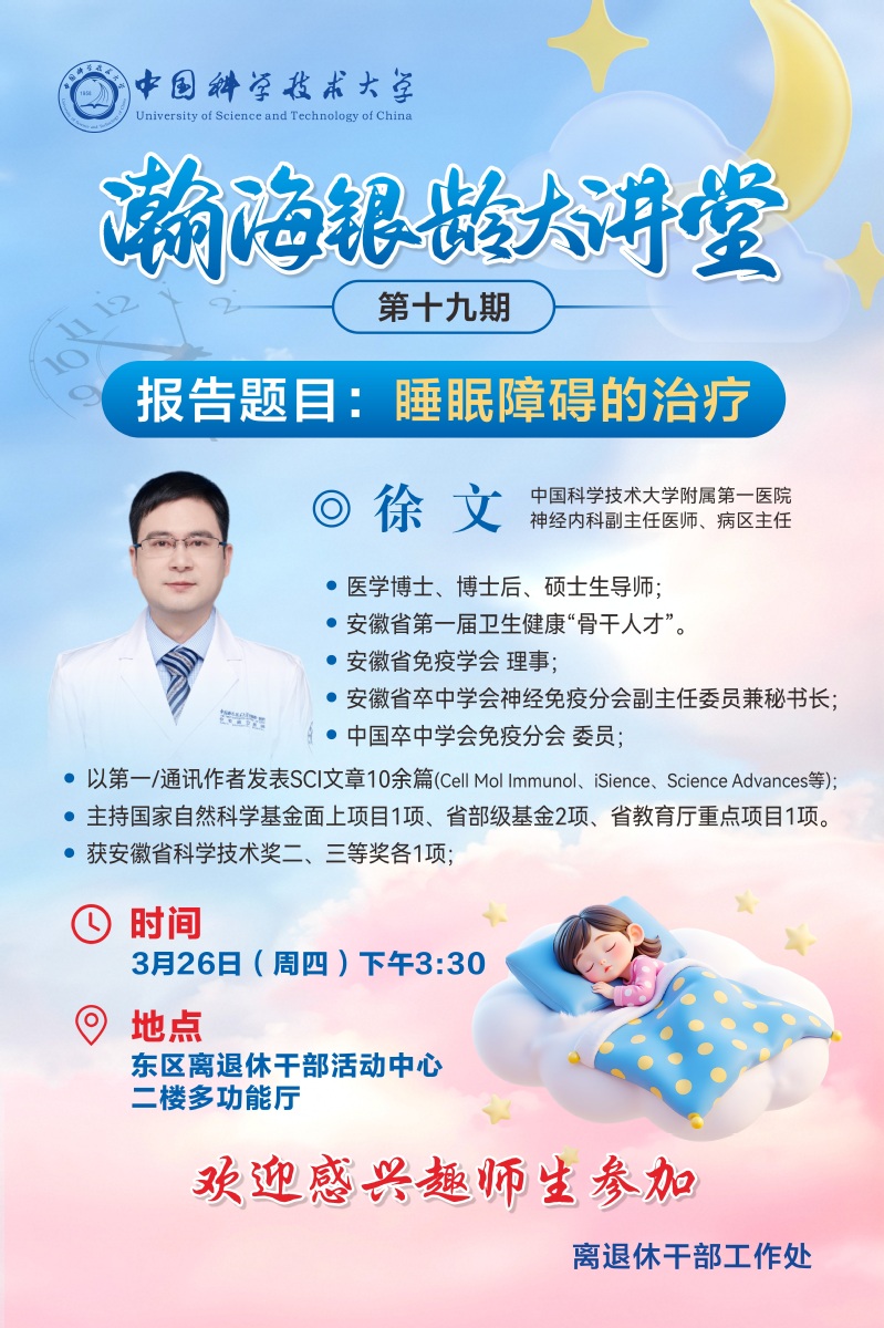 关于举办第十九期“瀚海银龄大讲堂”——睡眠障碍治疗的通知