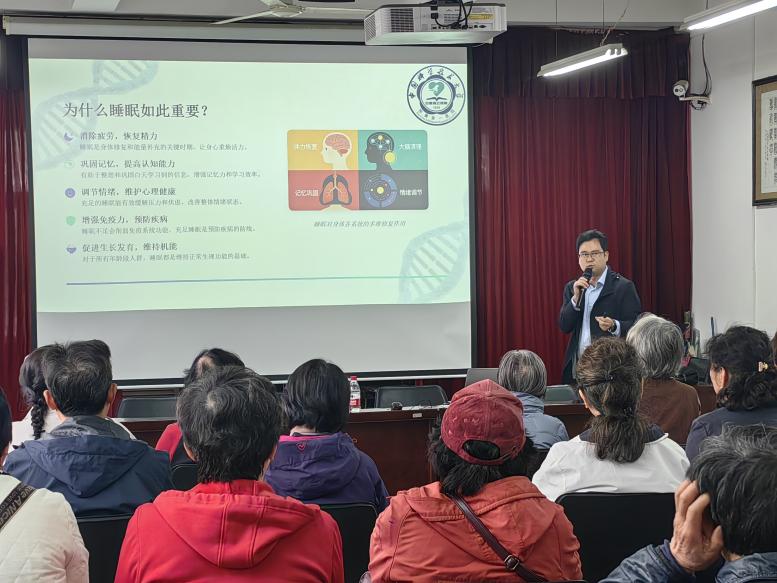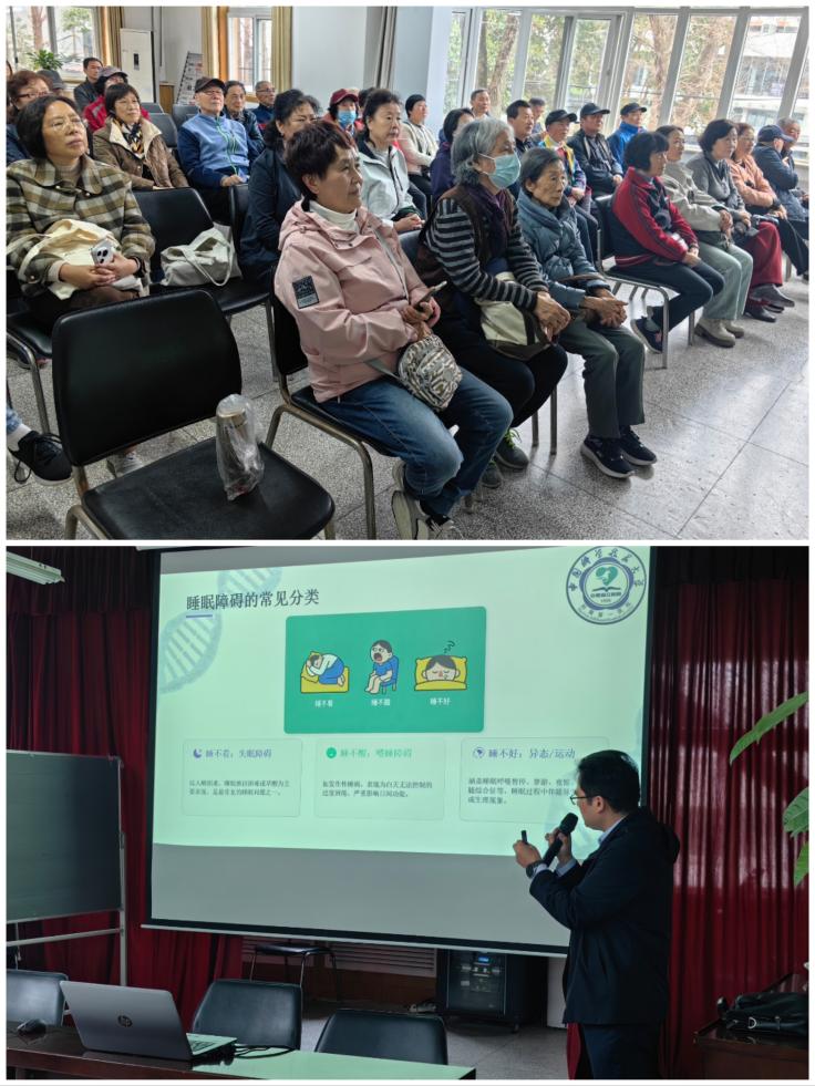 讲座中,徐文医生围绕失眠障碍的定义、分类与现状展开讲解,帮助老同志们系统认识失眠障碍的基本概念和常见表现。在此基础上,他结合临床经验,重点介绍了失眠障碍的预防策略和治疗方法,详细分析了规律作息、科学干预、规范诊疗等方面的重要意义。针对老年群体常见的睡眠问题,徐医生还重点讲解了老年人失眠障碍的特点与应对策略,提出了具有针对性和实用性的建议,引导大家树立科学睡眠理念,增强主动健康管理意识。